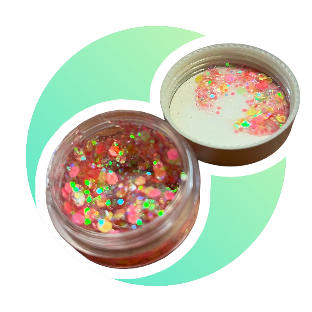 Glow Jellies feature a glitter gel formula offering excellent coverage and long-lasting wear. They can be customized to any color or blend of colors you choose. Each comes with a spatula applicator for easy use. Standard color options are also available.
